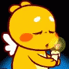 A cute yellow cartoon dragon with small wings gently holds a lit candle in a dark setting.