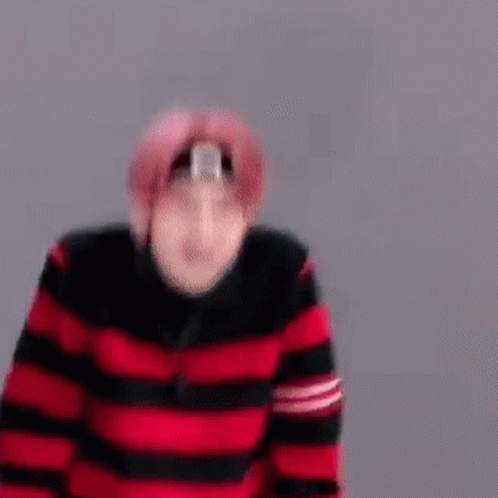 Enhypen's Sunoo laughing and smiling brightly in a red and black striped sweater with a black crescent moon headband.