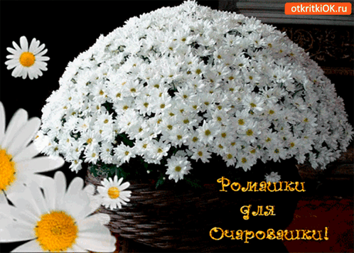 A beautiful bouquet of white daisies in a wicker basket, with a sweet message for a charmer.