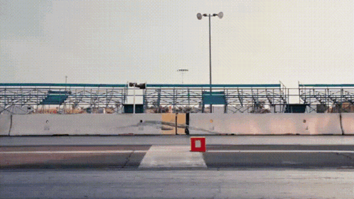 A Tesla Cybertruck towing a Porsche 911 on a trailer, passing another Porsche 911 on a drag strip.