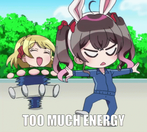 Muni Ohnaruto and Rinku Aimoto from D4dj display their energetic personalities with a 'Too Much Energy' caption.