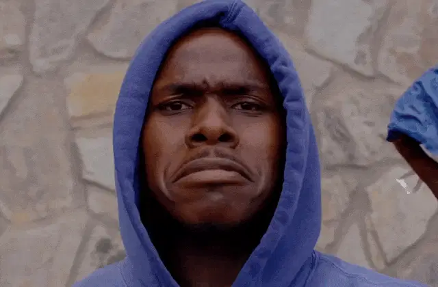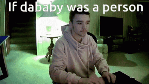 A man, humorously depicted as 'Dababy' or 'David Schwimmer,' falls off his chair in a comedic moment.