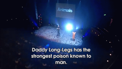 Ricky Gervais on stage, reading a statement about Daddy Long Legs having the strongest poison known to man.