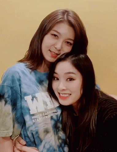 Dreamcatcher's Dami and Gahyeon share a cute and cozy hug, smiling happily for the camera.