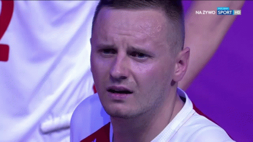 Damian Wojtaszek winks during a volleyball match, shown live on Polsat Sport HD.