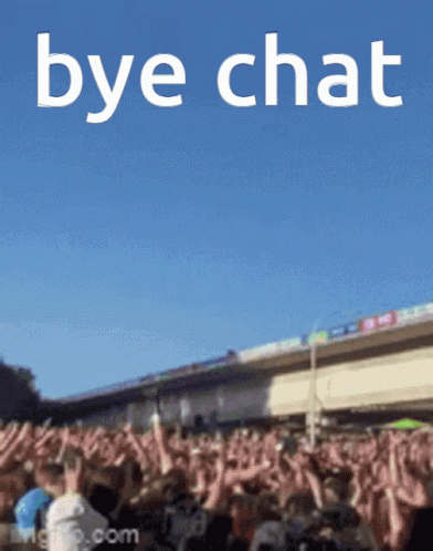 Damiano David stage diving into a crowd with 'bye chat' text overlay, capturing an energetic moment.