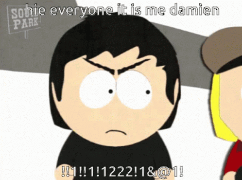 Damien Thorn from South Park announces his presence, saying 'Sophie everyone it is me Damien!'