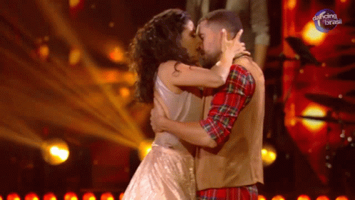 Ricardo Vianna and Dani share a passionate kiss during a romantic dance on Dancing Brasil.