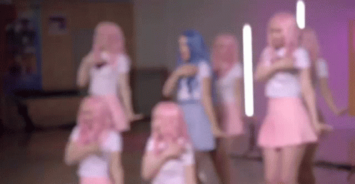 Френдзона (Frendzona) members and dancers with pink and blue hair perform a lively dance routine.