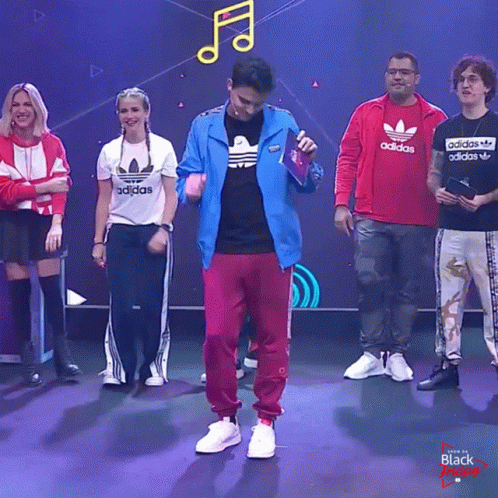 Felipe Neto, Giovanna Ewbank, Bruno Correa, and Ale Xavier dancing happily at the Black Friday Brasil show.