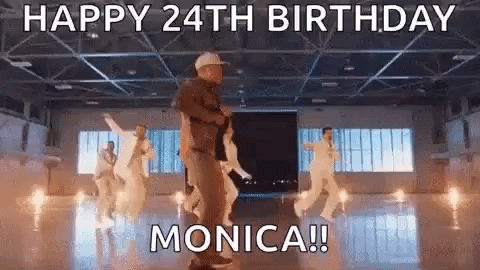 A group of people dance to celebrate Monica's 24th birthday with a hip hop performance.