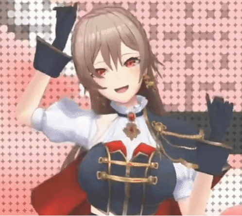 a close up of a girl in a video game with red eyes and gloves .