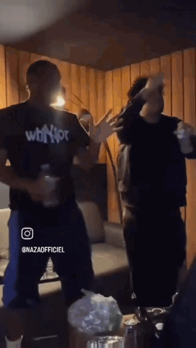Naza and Tiakola show off their moves, dancing in a lively Congolese style in a studio setting.