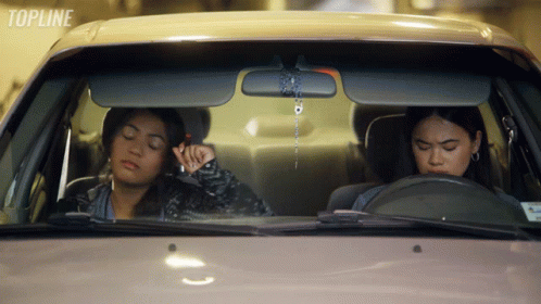 Two women, Tala and Cyrena Fiel, are seen dancing and grooving inside a car, with the 'TOPLINE' logo visible.
