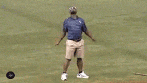 Man in sunglasses and shorts performs the iconic Laffy Taffy dance on a grassy field.