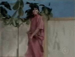 Brazilian singer Gretchen performs a lively dance, revealing a vibrant red bodysuit from under a pink dress.