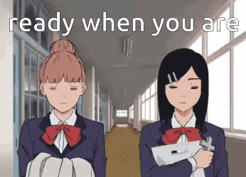 Two anime girls from Dandadan, possibly Aira Shiratori and a friend, give a thumbs-up with 'ready when you are' text.