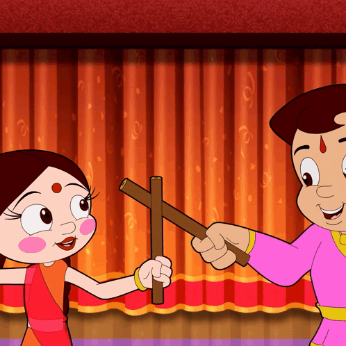 Chhota Bheem and Chutki perform a joyful Dandiya dance, celebrating Navratri with traditional sticks.