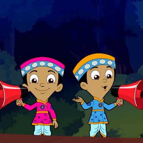Dholu, Bholu, and Kalia perform a lively Dandiya dance during the Navratri festival, celebrating with joy.