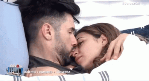 Dani and Bea share a tender kiss on the forehead while cuddling intimately in bed during Solos.