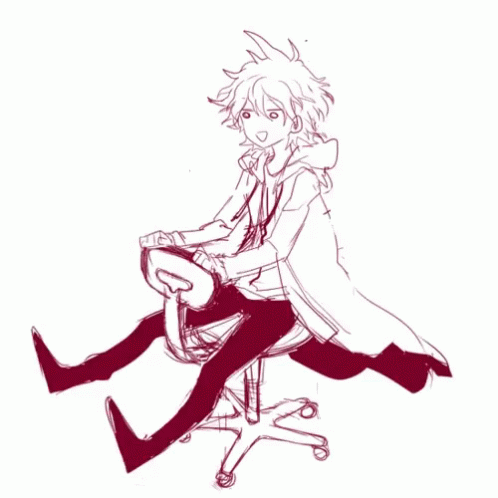 Animated sketch of Nagito Komaeda from Danganronpa, featuring his signature coat with '55'.