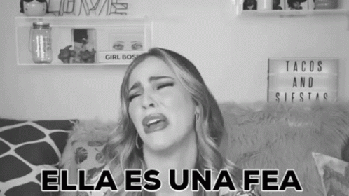 Dany Daniela Di Giacomo crying intensely with the caption 'Ella Es Una Fea' visible on screen.