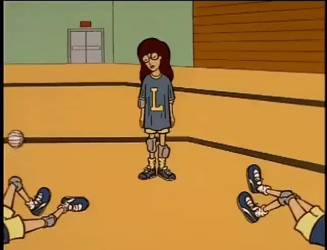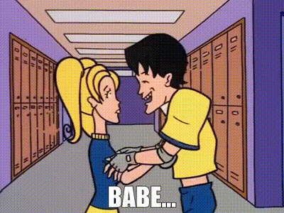 Daria Morgendorffer and Trent Lane in a school hallway, with Trent saying 'BABE...' to Daria.