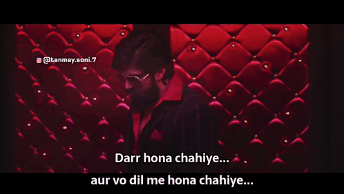 Yash as Rocky Bhai delivers an iconic dialogue about fear, stating it should be in the opponent's heart.