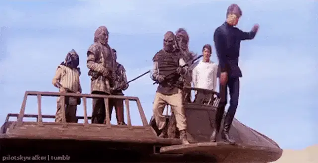 Darth Maul, with Pre Viszla, declares he will find Jabba at Jabba's Palace, wielding his red lightsaber.
