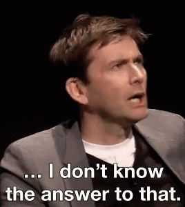 David Tennant, wearing a suit, states, 'I don't know the answer to that,' in an interview setting.