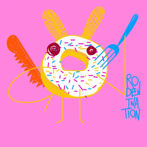 A whimsical black and white drawing featuring a rodent, clouds, and the messages 'Rodent Nation' and 'Thinking of You'.