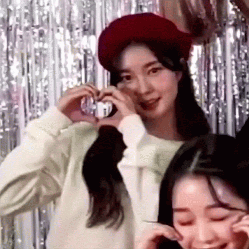 Kim Dayeon from Kep1er makes a heart gesture, winking and wearing a red beret.