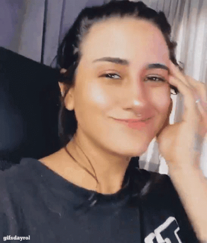 Daylimns Gifsdayrol smiling sweetly and looking at the camera, with a hand resting on her cheek.