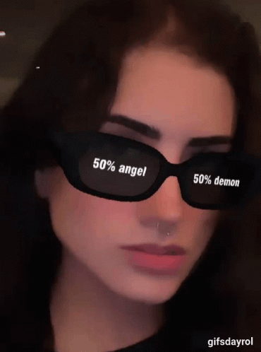 Daylimns Gifsdayrol smiles wearing sunglasses with '50% angel' and '50% demon' text.