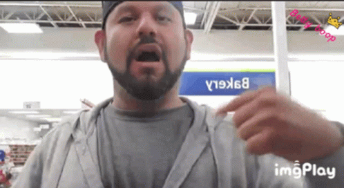 Daymn114 communicates using sign language in a store, sharing his vlog with viewers.