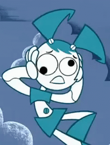 Jenny Wakeman (XJ9) from My Life as a Teenage Robot appears dazed and confused, holding her head.