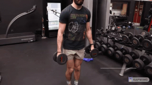 A man performs dumbbell reverse lunges in a gym, demonstrating a level 3 exercise for leg strength.