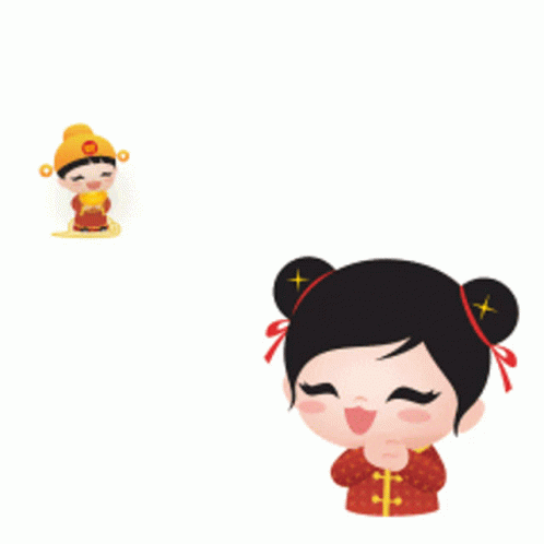 Cute cartoon boy and girl in traditional Chinese attire, celebrating Chinese New Year for DBS Bank.