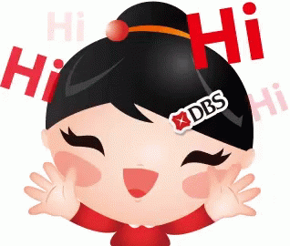 DBS Bank's cute cartoon mascot waves and says 'Hi' with a friendly gesture.