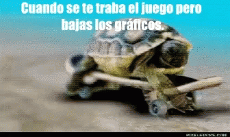 A funny meme featuring a turtle on a skateboard with text about lowering game graphics.