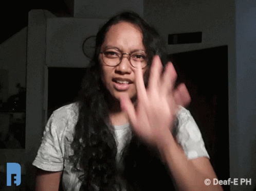 A Deaf Filipino person signing 'Wait' with an open palm gesture, expressing patience and calm.