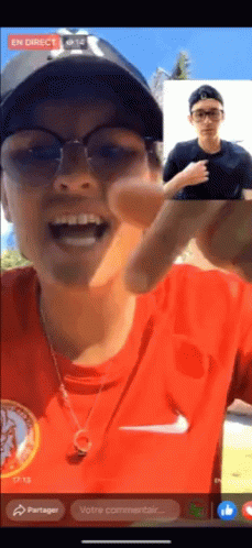 Two individuals, a woman in a red shirt and a man in an inset, communicate using sign language.