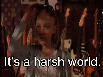 Dakota Fanning delivers the iconic 'It's a harsh world' line, embodying the 'deal with it' attitude.