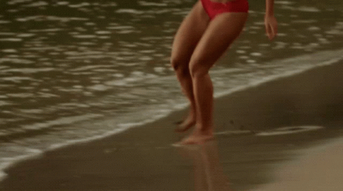Florence Cassell and Neville Parker (Josephine Jobert, Ralf Little) enjoy a playful run on a beautiful Caribbean beach in Death In Paradise.