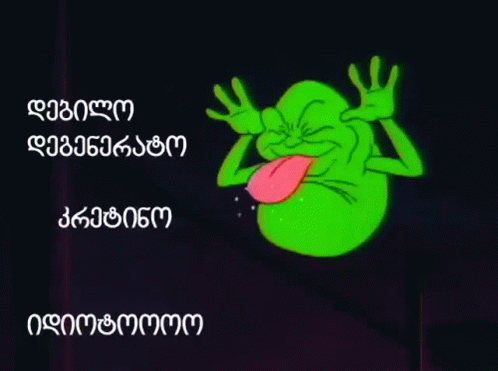 A green cartoon character with a pink tongue sticking out, expressing anger or teasing.
