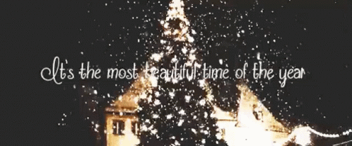 A festive Christmas tree sparkling at night with falling snow, featuring the text 'It's the most beautiful time of the year'.