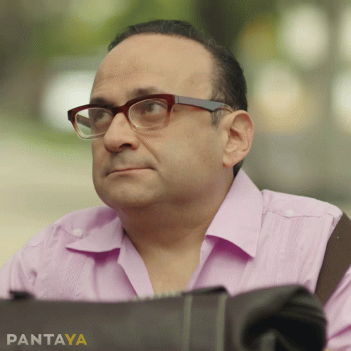 Lalo España, wearing glasses and a pink shirt, looks visibly disappointed and unhappy.