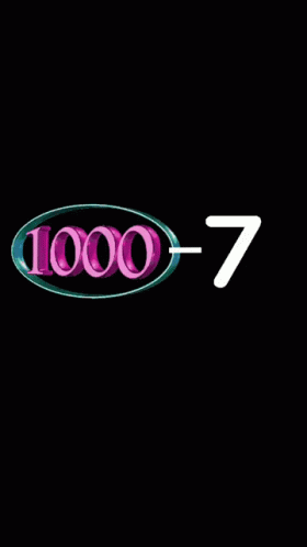 A stylized '1000' in pink and green rotates next to a large white '-7' on a black background, referencing the 'dead inside' meme.