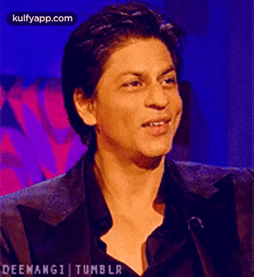 Shah Rukh Khan makes expressive and funny faces while sitting, wearing a dark jacket on what appears to be a stage.