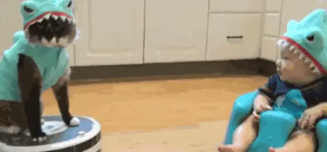 loadingToddler Shark Admiring Cat
